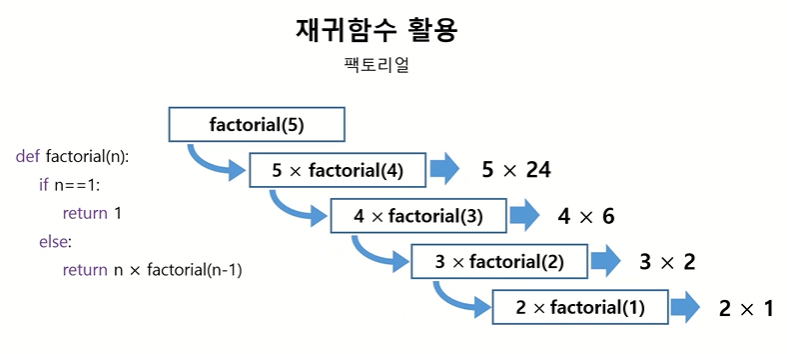 재귀함수 사용이유-코드의 간결화 및 변수 사용 최소화하기 위해서이다. 조건문을 활용하여 재귀함수 종료조건을 삽입해 주어야 한다.