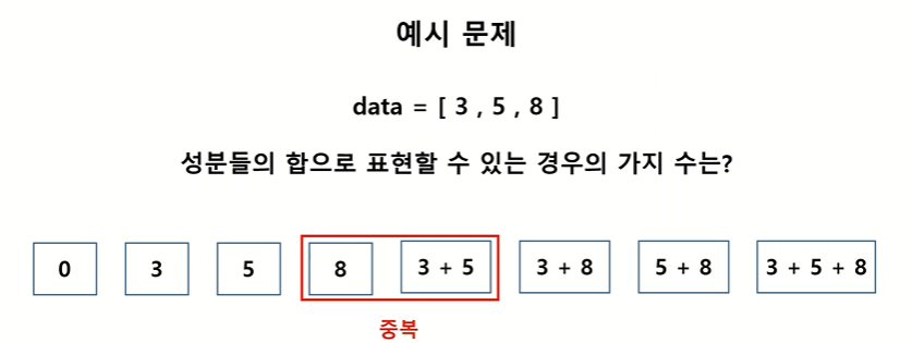 data = [3, 5, 8]성분들의 합으로 표현할 수 있는 숫자의 경우의 수는??