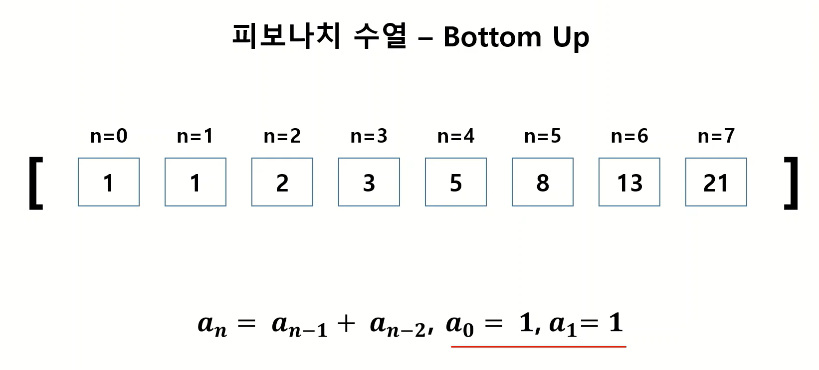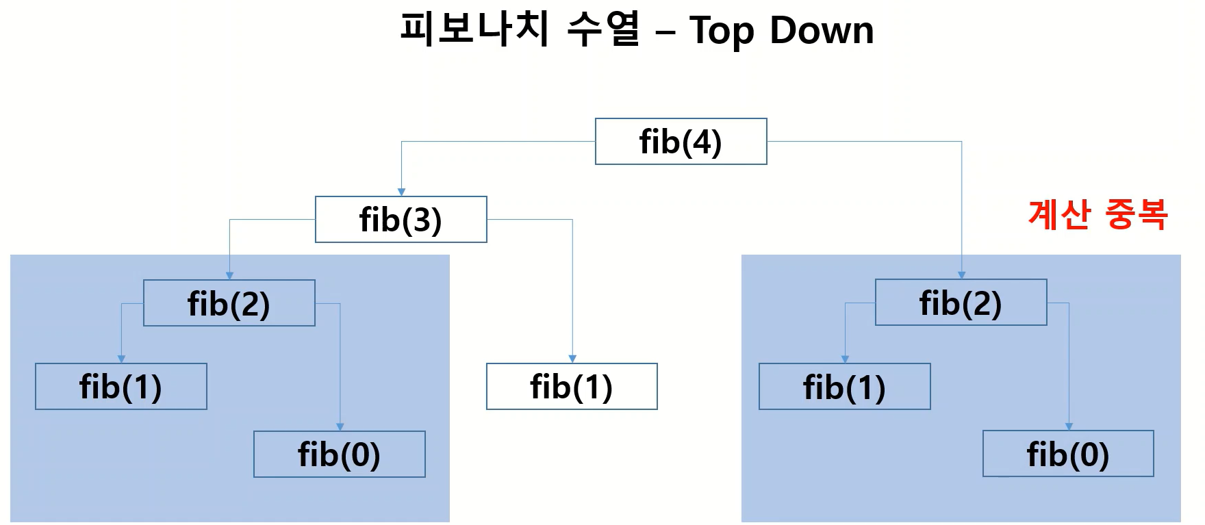 if n ==0 or n ==1: return 1 else: return (fib(n-1) + fib(n-2))위에 사진을 보면 알 수 있듯이 Top down은 많은양의 계산이 필요하고 계산 중복, 이를 해결하기 위한 것이 메모이제이션이다.