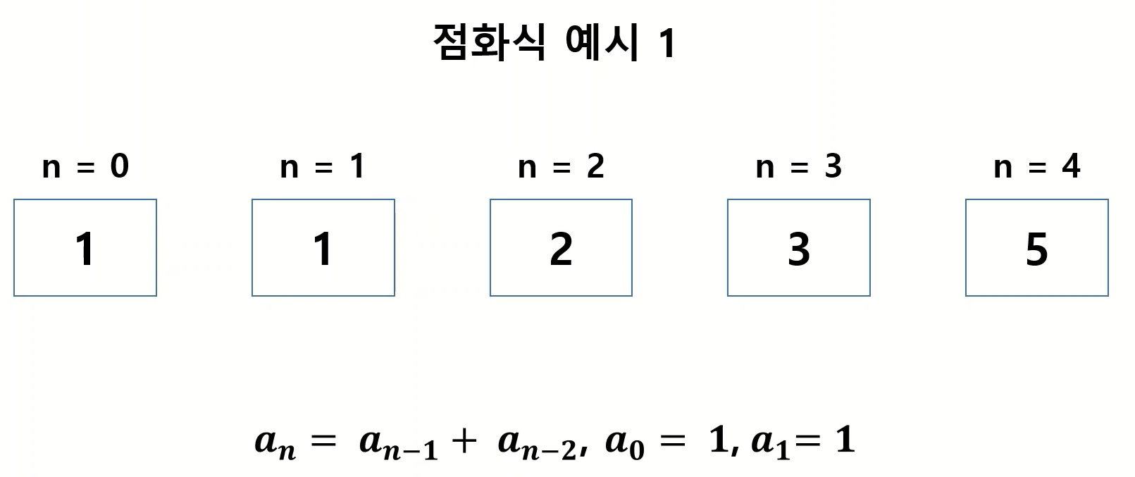 아래 예시로 여러가지 점화식 구현도 가능하다.