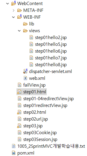 - 특징: 일반 servlet@jsp 개발시의 위치와 동일, WEB-INF 내부에 구현시 실행 불가
